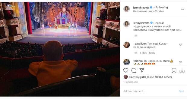 Елена Кравец расположилась на балконе, посадив сынишку в кресло спереди. Мальчику очевидно понравилось представление с участием Екатерины Кухар, потому что на снимке он смотрит прямо на сцену, не отрывая глаз - рассмотреть можно лишь затылок малыша. "Первый «Щелкунчик» в жизни и мой заколдованный увиденным принц:)", - поделилась Елена Кравец в описании к фото. Пользователи соцсети в комментариях поделились своими эмоциями после откровений юмористки: "Как очаровательно, как мило"; "Ого, какие у вас козырные места