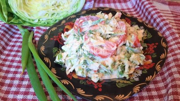 Салат из молодой капусты с помидорами и сыром готовится считанные минуты! Быстрый, вкусный, освежающий, сочный, полезный весенний салатик. Ингредиенты капуста молодая 250 гр.; помидоры 2 шт.; сыр твердый 100 гр.; соль по вкусу; сметана 100 гр.; зелень по вкусу. Приготовление: 1 Подготавливаем ингредиенты.
