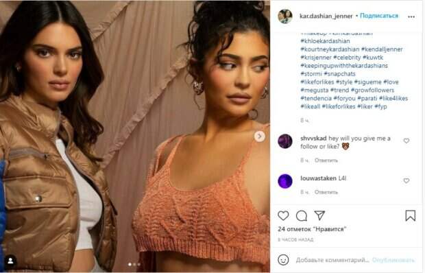 Кайли и Кендалл Дженнер любят принимать участие в фотосессиях вместе, так как они заметно моложе своих старших сестер и имеют между собой не такую большую разницу в возрасте. Не так давно девушки решили впечатлить образами в простых маленьких топах и покрасоваться на камеру идеальной кожей. На публике Кайли практически невозможно заметить без макияжа, тогда как Кендалл является супермоделью и должна выглядеть безупречно всегда. На снимке видно, как обе красотки позируют, призывно глядя в объектив и соблазняя видом в похожих луках. Лишь благодаря верхней одежде образ Кендалл вышел более скромным. Отметим, фото без рекламы поклонникам нравится не меньше. К примеру, на новых фото Кайли и Ким померились прелестями в маленьких и похожих бикини на тонких завязках. Соблазнительно прогнувшись, звезды пытались показать необычное сочетание тонкой талии с пышными бедрами. На втором фото Кайли сделала акцент именно на сверкающем от шиммера теле, которым так гордится, ведь после родов ей удалось сбросить 15 килограмм лишнего веса. «Идеальные малышки