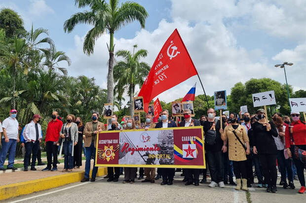 В Каракасе впервые прошел "Бессмертный полк". Участники прошли колонной с фотографиями, знаменем Победы, флагами России и Венесуэлы к памятнику предшественникам борьбы за независимость Венесуэлы