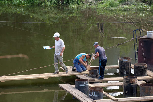 Временный путепровод начали возводить на Набережной Дрейера в Зареченском округе Тулы, на участке, где построят мост через реку Упу. Фотокорреспондент Тульской службы новостей побывал на строительной площадке. Как рассказал один из строителей, временный мост необходим, чтобы обеспечить работу строительной техники.