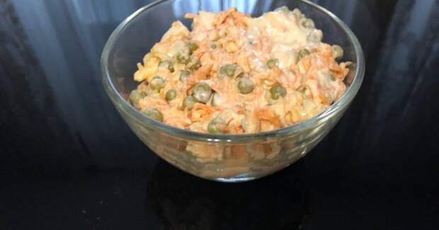 Кильку в томатном соусе все привыкли видеть обычной и довольно бюджетной закуской. Однако, стоит добавить ее к отварным яйцам и вот уже рыба превращается в деликатесный салат, к тому же очень простой в приготовлении. Для рецепта нам понадобится банка кильки в томате, банка зеленого горошка, 4 отварных яйца, морковь, луковица, 3 столовых ложки майонеза.