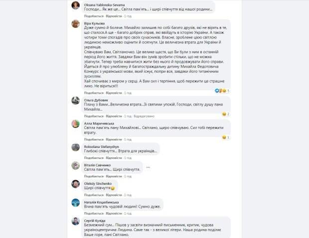 Трагическое известие всколыхнуло украинцев. «Печально... Очень печально ... Это - потеря потерь! Низко кланяюсь Вам, очень дорогой Михаил Федотович...», «Большая потеря. Жаль, что так рано. Искренние соболезнования и светлая память...», «Безграничная печаль... Ушел в мир иной выдающийся писатель, критик, замечательная украиноцентричный Человек. Именно так - с большой буквы», «Глубокие соболезнования... Потеря для украинцев...», «Очень грустно и больно. Михаил оставил по себе много друзей, которые не верят в то, что произошло. А еще - много добрых дел, которые войдут в историю Украины. А также четыре тома воспоминаний о своих современниках. Собственно, сделанное этим светлым человеком невозможно оценить и понять. Это огромная потеря для Украины и украинцев», - пишут в сети. Михаил Слабошпицкий - член Национального союза писателей Украины, лауреат национальной премии имени Тараса Шевченко (2005), за роман-биографию "Поэт из ада". Среди его работ — более двух десятков книг для детей и юношества, проза, публицистика и литературная критика. В разные периоды карьеры Михаил Слабошпицкий работал редактором отдела критики газеты «Литературная Украина», а также главным редактором газеты «Вести из Украины» и журнала «Вавилон-XX». Сын Михаила Слабошпицкого Мирослав является известным украинским кинорежиссером, дочь Иванна - журналисткой. Напомним, вирус забрал жизнь выдающегося украинца, страна скорбит: "Жаль, что нас покидают такие". Как сообщала Politeka, оборвалась жизнь выдающегося украинца, страна скорбит: "Уходит поколение великих". Также Politeka писала, что жизнь украинца загадочно оборвалась в Польше, парень уже возвращался домой: "Нашли возле..."