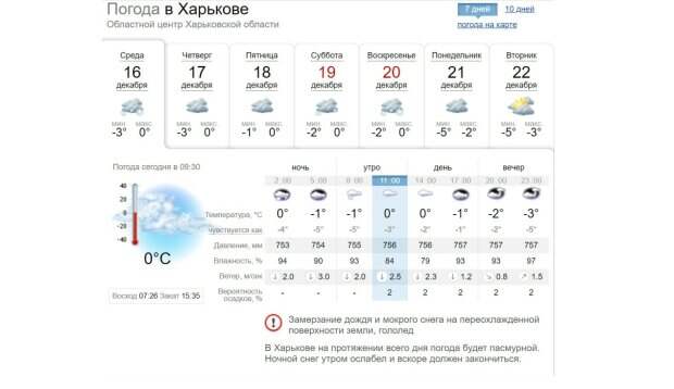 Харьковчан предупредили об ухудшении погодных условий По данным Укргидрометцентра, 16 декабря в восточных областях на дорогах будет гололедица, передает "Веха". Погодные условия могут привести к нарушению движения транспорта на отдельных участках дорог и улиц. К слову, харьковчанам показали очереди в травматологию в 17-ой больнице.