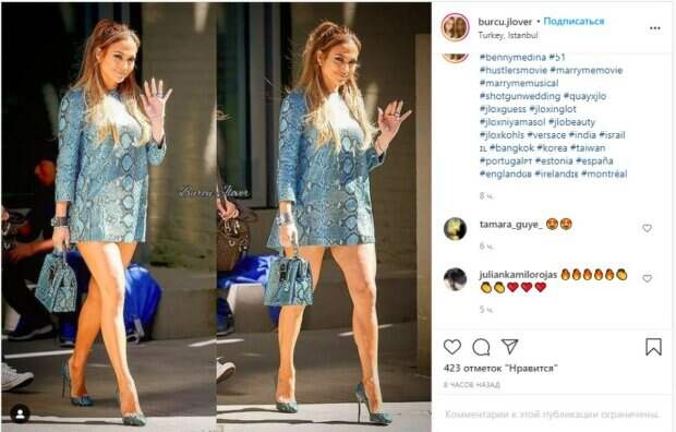 В этот же раз поклонники заприметили интересный недочет. Во время того, как Лопес направлялась по делам, ее заметили папарацци и сделали несколько кадров. Однако отретушированное фото оказалось не таким идеальным. В качестве примера на фан-аккаунте подметили, что на двух разных фото Лопес выглядит по-разному. Точнее, ее фигура, а в особенности, ноги. Целлюлит и обвисшая кожа не были скрыты под фотошопом, из-за чего кажется, будто фигура у звезды не такая идеальная, как говорят. Отметим также, сам наряд со змеиным принтом, мало что скрывал, акцентируя внимание на ногах. Впрочем, туфли на шпильке, накладные локоны и дизайнерская сумка идеально дополняют лук. "А вот и реальность" - сказано в подписи поста. Отметим, в недавней съемке Джей Ло позировала в белоснежном костюме, едва не вывалив бюст. Брюки на высокой посадке подчеркнули тонкую талию знаменитости. Джей Ло была в спортивной обуви, сделав образ тем самым, каким-то более молодежным и игривым. "Красиво как всегда !!!