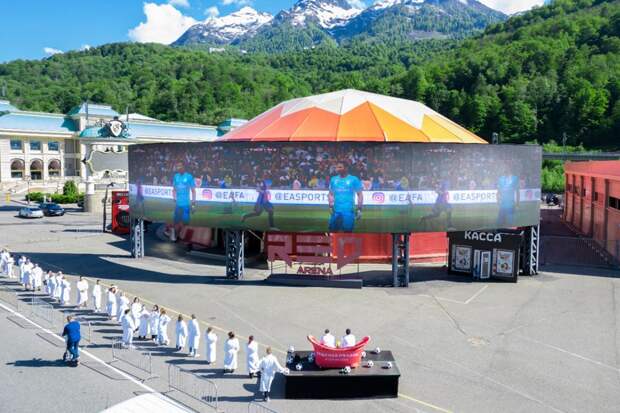 Накануне игорная зона "Красная Поляна" привлекла внимание съемками проморолика проекта: сотни гостей отеля "Бонус" в халатах выстроились в километровую очередь к экрану RED ARENA для того, чтобы протестировать игру