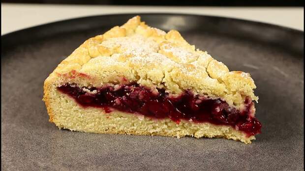 Ингредиенты: сливочное масло – 200 г яйца – 2 шт. сахар – 150 г соль щепотка сметана – 60 г разрыхлитель – 10 г ваниль мука – 500 г Для начинки: вишня без косточек (свежая или замороженная) – 500 г сахар – 100 г картофельный крахмал – 30 г Вместо вишни можно взять другие ягоды или любое варенье.