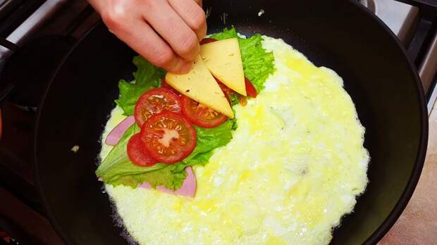Попробуйте приготовить и увидите реакцию ваших домашних. Продукты: Яйца - 2 шт. Сыр - 30 гр. Колбаса (мясо) - 50 гр. Помидор - 40 гр. (1 шт.). Зелень - по вкусу. Соль - по вкусу. Растительное масло - 1 ст.л. Видео: приготовление очень быстрого завтрака [embed][/embed]В соцсетях обсудили этот рецепт:“Омлет классный! А колбасу я бы поджарила сначала.”“Завтрак - хорошо, а котик - супер!”“Удобнее когда колбаса и сыр на тёрку, получается нежнее.”“Прекрасный и сытный завтрак, спасибо! Васенька поди колбаску получил - умывается.”“Обязательно приготовлю такой сытный и красивый омлет на завтрак!”