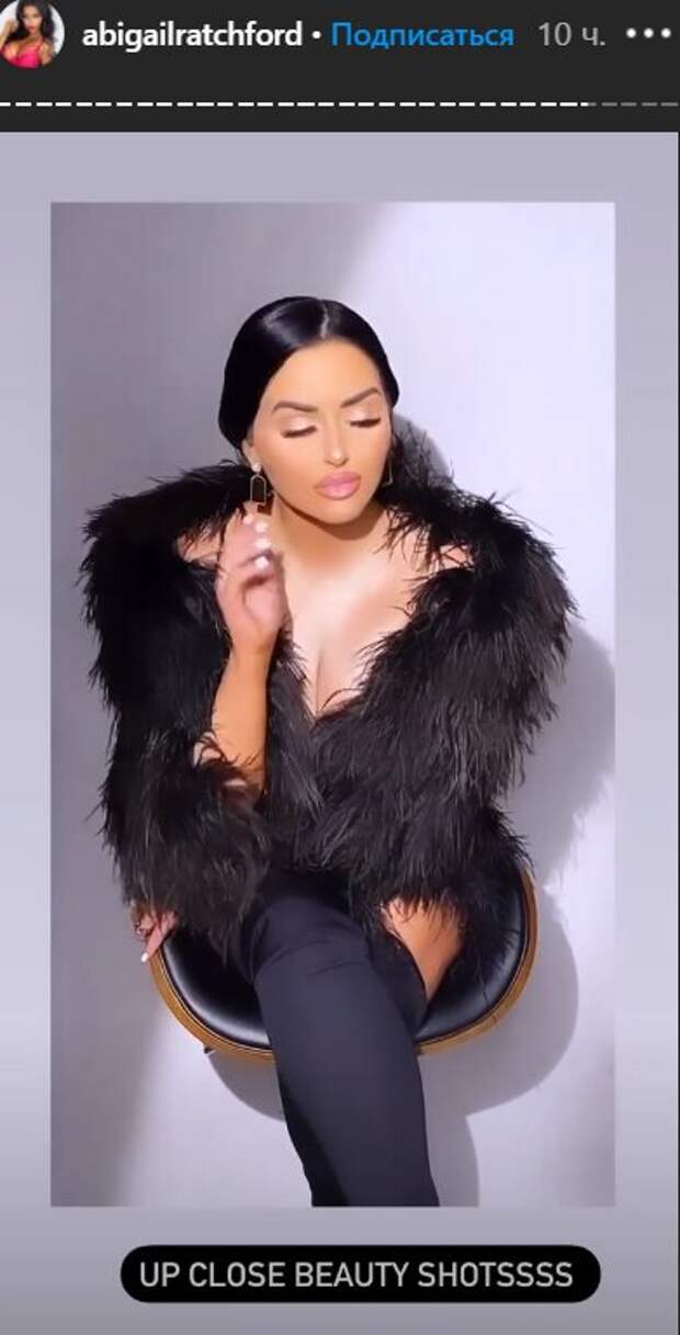 В этот раз она представила соблазнительную фотосессию в новом образе. Большинство снимков выполнены в черно-белой цветовой гамме, а потому получились чрезвычайно стильными и атмосферными. Эби примерила одну из своих любимых вещей – черную шубку, которую надела прямо на голое тело. Так что совершенное тело инстадивы в который раз восхитило - невозможно не смотреть на такую красоту. На втором снимке модель предстала в не менее ярком наряде: длинной юбке и прозрачной накидке. При этом появилась в кадре топлесс, едва прикрывая обнаженную пышную грудь руками. Ее волосы собраны в элегантную прическу, которая вписалась в образ красотки. На лице она использовала минимум макияжа в естественных цветах. К сожалению пользователи сети не смогут оставить свои комментарии под снимками, ведь горячая бесстыдница Эбигейл Рэтчфорд показала их в своем Instagram-Stories. Напомним, что Эби Рэтчфорд обтянулась красной сеточкой и превратилась в настоящую госпожу: "Беспредельный соблазн". Как Politeka писала, что бесстыжая Эби Рэтчфорд показала достоинства в дерзкой позе: "Дикая кошечка". Также Politeka сообщала, что Эби Рэтчфорд посветила ягодицами в "хищном" боди: "Детка, наклоняйся".