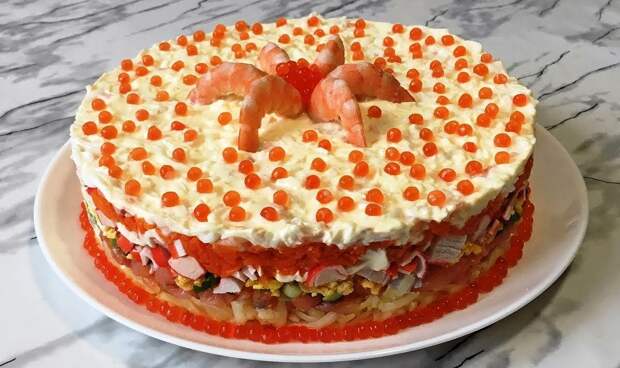 Нам понадобится: • Крабовые палочки — 250 гр.; • Сыр твёрдый — 170 гр.; • Огурцы свежие — 270 гр.; • Кукуруза консервированная — 250 гр.; • Лук — 70 гр.; • Яйца варёные — 5 шт.; • Майонез — по вкусу; • Соль, перец — по вкусу. Способ приготовления: 1. Крабовые палочки нарежьте небольшими […]