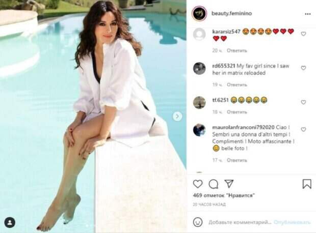 Моника показала два кадра, на одном из которых держала кроху Деву, а на втором - Леони. Снимки получились очень нежными и будоражащими. "Спасибо, мои ангелы, за все, чему вы меня учите каждый день. С Днем Рождения всех мам", - написала Моника. Фанаты поставили почти 200 тысяч лайков и написали комментарии: "Ты делаешь мои дни прекрасными", "Итальянский язык полностью отрицается?", "красиво и очень трогательно", "Я так тебя люблю. С днём рождения тебя супер мама", "С Днем Матери, Прекрасная мама", "Я хочу сфотографироваться с Моникой, которая для меня самая красивая женщина в мире". Сообщалось, что знаменитая итальянская актриса и модель Моника Беллуччи умеет показать идеальный вид на съемке в любом образе. На фоне бассейна звезда позировала в простом свободном белом наряде. Одежда скрыла фигуру Беллуччи, но при этом открыла выгодный обзор на ее загорелые и стройные ноги. А вот открытая зона декольте смотрелась лучше всего. Напомним, Моника Беллуччи кокетливо открыла декольте, склонившись на камеру А еще Politeka писала, что Моника Беллуччи обтянула пышную фигуру атласным черным боди Также Politeka сообщала, что Моника Беллуччи в прозрачной кофте и корсете показала, чем покоряет мужчин