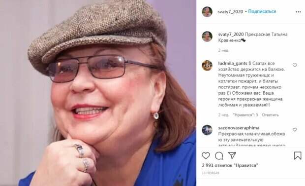 Актриса и звезда сериала "Сваты" Татьяна Кравченко удивила новым образом Свежее фото звезды появилась в Instagram-аккаунте, который посвящен популярному сериалу. Так, известная актриса Татьяна Кравченко предстала перед фанатами в новом образе: в очках и фуражкой, которая пользуется популярностью среди мужчин-таксистов.