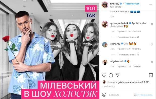 На снимке спортсмен держит одну красную розу. Он заявил о своём намерении попасть в шоу "Холостяк". Поклонники Артема Милевского оставили множество комментариев, где ждут его появление на популярном проекте: " Миля , наконец - то ты займёшь тем для чего рождён", "Пожалуй, это будет единственный "Холостяк", которого я буду смотреть", "Этого б вся страна ждала", "Впервые буду смотреть эту передачу", "Такое даже я посмотрю! Уровень сарказма зашкалит". Также ведущий шоу "Холостяк" Григорий Решетник оставил комментарий. "Артём, ждём! До встречи", - обратился к Милевскому Решетник. Ранее сообщалось, ведущий "Україна має талант" Решетник похвастался своей голубоглазой мини-копией: "Люблю" Также, жена ведущего "Холостяка" рассказала о важных семейных ритуалах: "Еще и о себе не забыть" Politeka рассказывала, жена "Холостяка" Добрынина на фоне Эйфелевой башни взялась учить украинцев, как жить: "Это не какие-то детские сказки"