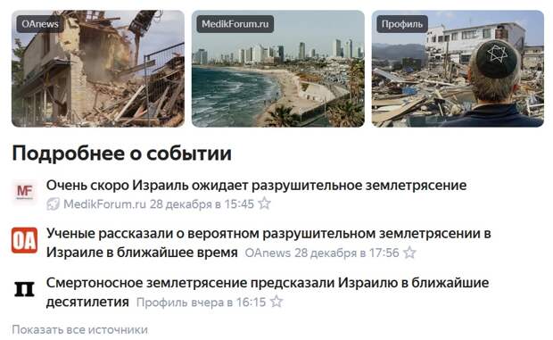 Как показало недавнее бурение в Мертвом море, напряженность в земной коре вдоль линии Сирийско-Африканского разлома начинает проявлять признаки разрыва. И хотя по статистике сильные землетрясения в нашем регионе происходят раз в 120-150 лет, а последнее такое землетрясение было в 1927 году, были случаи, когда пауза составляла всего несколько десятилетий. Авторы статьи напоминают, что в 1927 году, во время землетрясения магнитудой 6,2, погибло 500 человек и более 700 пострадало в Аммане, в Иерусалиме, Бейт-Лехеме (Вифлееме) и Яффо. Как сообщи журналистам профессор Тель-авивского университета Шмуэль Марко, «геологические хроники не врут, и сильное землетрясение в Израиле – вопрос времени». «Конечно, у нас нет возможности точно предсказать, когда земля затрясется у нас под ногами, это статистическая вероятность, но могу сказать, что, к сожалению, в ближайшие годы произойдет землетрясение, которое приведет к сотням жертв. Не хочу провоцировать панику, но мы живем в тектонически активный период. Это может произойти через десять лет или через несколько десятилетий, но может, и на следующей неделе, и мы должны быть к этому постоянно готовы», — утверждает профессор. Эту новость охотно перепечатала российская пресса, несколько «ускорив» прогноз – до «очень скоро» и «в ближайшее время». Существуют очень разные мнения по поводу того, увеличился ли в наше время риск при сильных землетрясениях. Одни утверждают, что раньше здания строились практически без фундамента, без современных инженерных знаний, ии сейчас разрушений будет намного меньше. Другие говорят, что в прежние времена постройки были низкими, а сейчас практически все дома многоэтажные, не говоря уже об офисных «высотках», и что если бы во время землетрясения 1927 года постройки достигали нынешней высоты, жертв и разрушений было бы гораздо больше. Хотя в последние годы в Израиле активно укрепляли жилые здания, построенные по старым технологиям и не обладающие достаточной устойчивостью, программа «Тама-38» охватила далеко не все подобные постройки. The post Британская пресса предсказывает Израилю смертоносное землетрясение first appeared on Донбасс Сегодня.