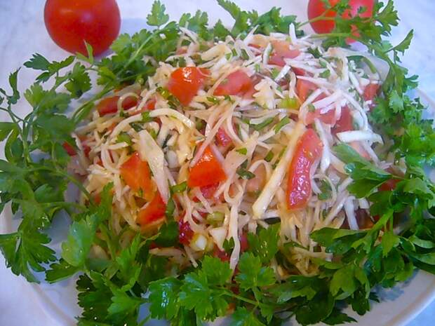 Очень вкусный и не сложный в приготовлении салат. Советую приготовить хотя бы один раз, и думаю что он займёт не последнее место за вашим столом. Сочный и насыщенный, можно подать как на праздник, так и на обед или ужин в обычный день. Его можно заправить как майонезом, так и вкуснейшей заправкой, которую я опишу ниже.