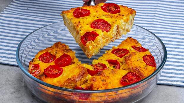 Ингредиенты: Батон или хлеб несколько ломтиков Яйца – 4 шт. Белый йогурт – 200 г Растительное масло – 30 мл Соль – 5 г Сыр – 100 г Помидоры Черри – 100 г Орегано А на десерт можно приготовить тертый пирог с повидлом. Приготовление: На дно формы выложить ломтики хлеба. Яйца смешать с йогуртом, влить масло, посолить и перемешать венчиком.