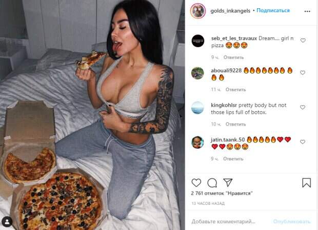 Тем не менее, на фан-аккаунтах начали поздравлять модель и делиться лучшими ее фото за последнее время. Многим понравился домашний кадр с Омович, которая позировала в постели рядом с двумя коробками пиццы с различной начинкой. При этом девушка не стала стесняться и потянула за декольте топа для более смелого кадра. Примечательно также и то, что стройная красотка весит при росте 170+ см всего 45 килограмм, любит суши и пиццу, которую нередко рекламирует. Отметим также, что в своем блоге Алена заявляет: она в остальное время питается правильно и это залог ее успешного поддержания веса. Вот что пишут в сети: «Просто шикарная фигура