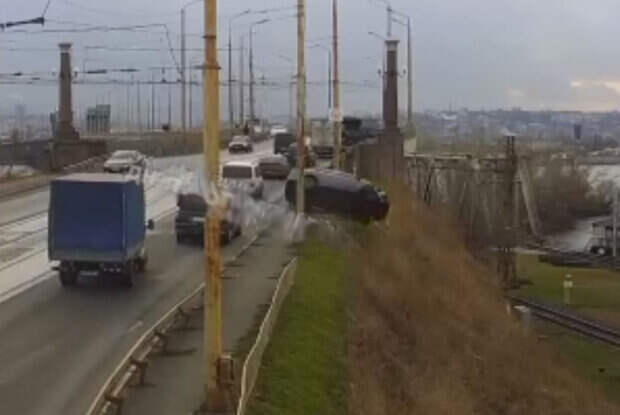 В Днепре с Амурского моста слетел легковой автомобиль. Инцидент произошел 20 декабря в обеденное время, сообщает Telegram-канал "Днепр оперативный". Момент ДТП зафиксирован камерами видеонаблюдения Ситуационного центра Днепра. Как видно из видео, легковой автомобиль Toyota двигаясь левой полосой решил совершить обгон и ехать уже по правой полосе.