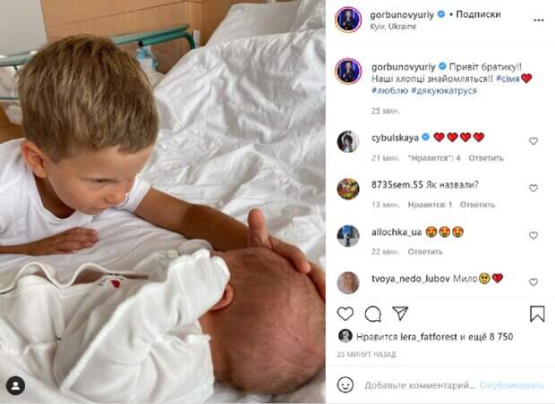 Счастливый отец решил показать публике, как Ваня принимает младшего братика. На фото новорожденный лежит на белоснежной постели, а старший мальчик нежно трогает его по головке. «Привет братик !! Наши мальчики знакомятся!», - сообщил Юрий Горбунов. Пользователи сети не стали скупиться на комплименты и оставили много теплых слов. Многих заинтересовало, как назвали сыночка. "Привет новый житель))) пусть тебе сопутствуют удача, вера и здоровье))))", "Как назвали малыша?", "Мило и все-таки как назвали кроху?", - спрашивают в сети. Отметим, что у Кати Осадчей трое сыновей: Илья от первого брака, 4-летний Иван и родившейся малыш. Ранее сообщалось, Горбунов кардинально сменил имидж ради съемок: "Николаев пластику сделал по омоложению" Также, Горбунов в роддоме поразил первыми кадрами с сыном: "Невероятное ощущение перерезать пуповину" Politeka рассказывала, Осадчая родила третьего ребенка и вышла в прямой эфир: "Уже не знают, как поднять рейтинг"