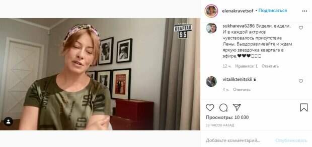 Актриса и звезда "Квартала 95" Елена Кравец на больничном поддерживает связь с поклонниками Об этом пишет Politeka.net. Так, украинская актриса решила записать новое видеообращение, посвященное съемкам новых выпусков "Вечернего квартала". Ролик был опубликован на странице официального фан-клуба Елены Кравец в Instagram.