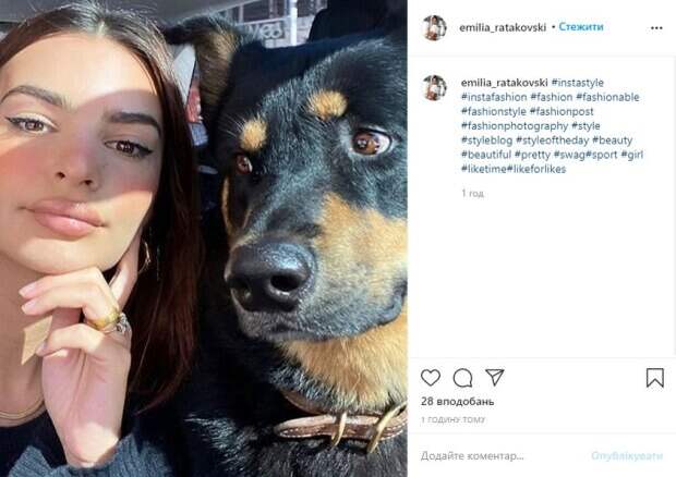 Большие выразительные глаза звезды подчеркнуты стрелками, на щеках – румяна, а губы покрыты нюдовой помадой и чуть-чуть блеском. Щенок-красавец смотрит на свою хозяйку, а Ратаковски – в камеру. Отметим, что на официальной странице звезды также можно увидеть снимки со щенком. Например, вместе с любимцем Эмили позировала на газоне Центрального парка в Нью-Йорке. О своей первой беременности Ратаковски объявила в октябре. Она поделилась видео, на котором продемонстрировала округлившийся животик, а затем интересное положение подтвердила в интервью журналу Vogue. Отец ребенка – муж актрисы актер и продюсер Себастьян Бир-Макклард. Влюбленные поженились в феврале 2018 года после нескольких недель отношений. Ранее мы рассказывали, что Ратаковски показала, как три года назад нарядилась для Хэллоуина. На фото Эмили позировала в топике из сеточки. Как можно сразу заметить, девушка не надела белье. Самое пикантное звезда прикрыла черным пластырем. На модели был парик фиолетового цвета. Красотка сидела в баре, а рядом можно увидеть коктейль. Напомним, беременная Ратаковски из Victoria’s Secret посветила округлившейся гордостью в бикини. Также Politeka писала, что Эмили Ратаковски показала в черном мини-бикини, как прячет животик. А еще Politeka сообщала, что беременная Ратаковски без одежды прикрыла бюст цветочком.