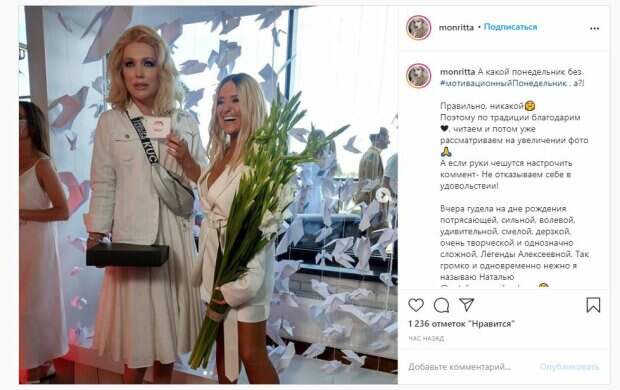 Можно заметить, что Монро прилично выше своей подруги. Об этом пишет Politeka.net со ссылкой на страничку знаменитости. "Вчера гудела на дне рождения потрясающей, сильной, волевой, удивительной, смелой, дерзкой, очень творческой и однозначно сложной, Легенды Алексеевной. Так громко и одновременно нежно я называю Наталью Могилевскую. И это не лесть и лизоблюдство, Вы меня знаете)", - написала Монро. Фанаты поставили более тысячи лайков и написали комментарии: "Фотку с гладиолусами поставлю на обои в телефоне.какая ж красота!", "Вау, бомба", "Красотки в белом!", "Могилевская классно выглядит! И платье супер!", "Монро ,как всегда, всех затмила!", "горжусь!Она моя Вселенная!Смотрел вчера как праздновали.Очень понравился танец с Чапкисом", " "Ой, она такая низенькая". Сообщалось, что самая знаменитая травести-дива Монро поделилась десяткой самых ярких образов на красных дорожках. На снимках она предстала в шикарных нарядах на презентациях, вечеринках и прочих светских мероприятиях. Напомним, дерзкая Монро показала топ самых жарких образов для вечеринок А еще Politeka писала, что неугомонная травести-дива Монро сразила наповал дерзким образом в маске Также Politeka сообщала, что эпатажная травести-дива Монро в новом образе взбудоражила откровением