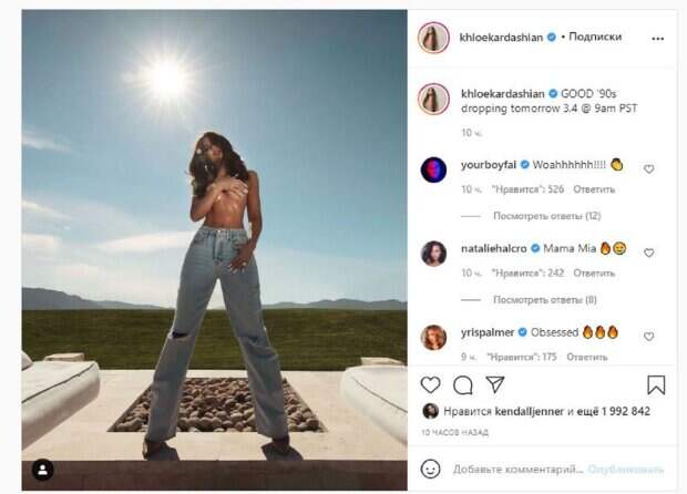 Об этом пишет Politeka.net со ссылкой на страничку знаменитости. Фанаты поставили почти 2 миллиона лайков и написали комментарии: "Мама Мия", "Одержим", "Тощая минни", "Оглушающая", "Моя королева", "Джинсы и пресс, пожалуйста", "я очень взволнован", "Ты красивая", "Ты выглядишь потрясающе, Хлои", "Красиво, я так сильно тебя люблю, идеально", "Вау, девочка, ты отлично выглядишь", "Люблю тебя, Хлои", "это те джинсы, о которых ты говорила ??", "Ты красивая Коко !!!", "Я люблю Хлою Кардашьян, я могла бы нарисовать ее в образе Симпсона". Мы писали, что легендарная американская икона стиля, 40-летняя Ким Кардашьян впечатлила безупречной фигурой во время отдыха с сестрой Хлои. Так, 40-летняя звезда имеет безупречное тело, буквально давая фору своей младшей сестре Хлои. «Вместе лучше», - коротко подписан снимок. Напомним, горячая сестричка Кардашьян расставила ножки в сапожках, завлекая самым аппетитным А еще Politeka писала, что Хлои Кардашьян обняла пальчиками роскошные ягодицы, раскрыв свою радость Также Politeka сообщала, что Хлои Кардашьян распахнула блузу и показала, что прячет в ниточках бикини