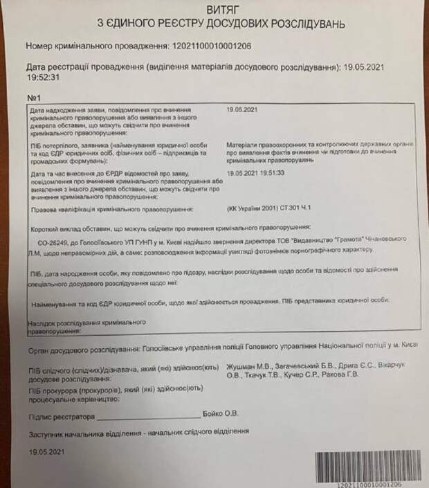 История со ссылкой на порносайт в школьном учебнике по украинскому языку получила свое продолжение. Народный депутат от «Слуги народа» Юлия Гришина сообщила, что полиция начала уголовное производство по этому факту. Депутат, по совместительству глава подкомитета по вопросам высшего образования Комитета Верховной Рады по вопросам образования, науки и инноваций опубликовала в соцсетях фото выписки из Единого реестра досудебных расследований.