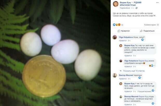 Позже он сообщил, что раскрыл одно яйцо - это оказались яйца ящерицы. Все оставшиеся яйца житель Краснокутска закопал обратно. "Это порча, сейчас все может быть..вы на огороде нашли", "Трюфеля", "Черепаха", - размышляют пользователи сети в комментариях. Кроме того, мы писали, что харьковчане жалуются на вонь в отдельных районах города. В харьковских пабликах и каналах в телеграме - десятки жалоб. харьковчане в своих предположениях связывают неприятный химический запах с выбросами Коксохима. "Плотно закрытые окна и двери не помогали. Невозможно было сделать нормальный вдох. Приторный сладковато-вонючий, едкий запах вызывал першение, кашель до слёз. На открытом воздухе во вторую ночь поставили миску с чистой водой. На утро вода покрылась бледно-розовой плёнкой. Это всё в лёгких", - написали в телеграм-канале Веха. Напомним, харьковчанам выдвинули требования, чтобы не попасть в "красную" зону карантина Как сообщала Politeka, в харьковском поезде пьяный "заяц" пытался задушить проводника, видео. Также Politeka писала, что жителей области просят не ездить в Харьков, срочное заявление.