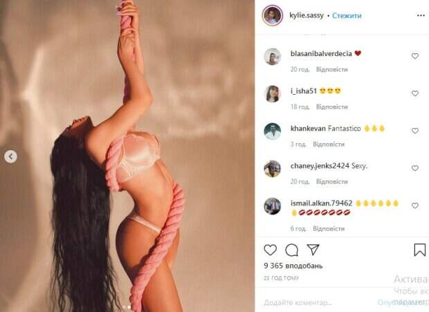 Американская бизнес-леди и модель Кайли Дженнер похвасталась роскошной фигурой в кружевном белье Об этом сообщает Politeka со ссылкой на фан-страницу звезды в Instagram. Так, на опубликованных снимках Дженнер позирует в кружевном белье, эффектно изогнувшись на камеру. При этом образ красотка дополнила распущенными волосами и канатом, который обвязала вокруг себя.