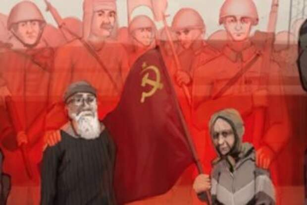 В российских соцсетях сюжетом №1 является картинка с бабушкой с красным флагом: Которая сделанная на