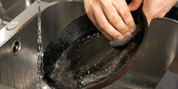 Многие производители очистительных средств утверждают, что их продукт способен справиться с любым нагаром на сковороде. Почти любая хозяйка понимает — само средство не справляется. Надежно очистить сковороду от застарелого жира можно другим способом: ее надо сначала нагреть, а уже потом жир сойдет сам с обычным очистителем.
