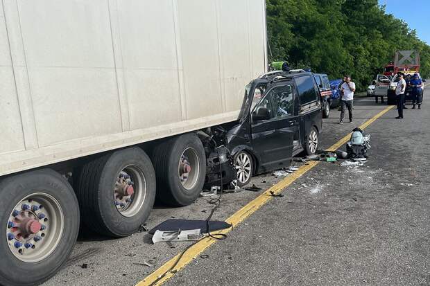 В Павловском районе Краснодарского края рано утром 24 июня минивэн, в котором ехала семья из шести человек, врезался в припаркованный на обочине дороги многотонный грузовик