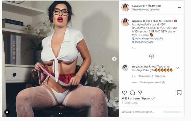 Юбку звезда задрала, а топ завязала на груди. На втором кадре модель уже развернулась пятой точкой к камере, демонстрируя идеальные ягодицы и красные туфли. Об этом пишет Politeka.net со ссылкой на страничку знаменитости. "Она горяча для учителя", - подписала звезда публикацию. Фанаты поставили более шести тысяч лайков и написали комментарии: "Я только что снял сегодня примерку костюма на Хэллоуин не могу дождаться, чтобы посмотреть твою любимую. Ты потрясающе выглядишь", "Детка", "Горячая злодейка", "Моя любимая соблазнительная ученица", "«... Чтобы быть незаменимым, нужно всегда отличаться ...» (Коко Шанель)". Мы писали, что известная мексиканская модель журнала "Playboy" Кассандра Сьенега (CJ SPARXX) будоражит сознания поклонников самыми жаркими образами. Модель надела крохотное желтое бикини, которое едва ли прикрывало сокровенные части груди своими тончайшими полосками. Сьенега двигалась так, что ее пышный бюст сжимался и выглядел еще соблазнительнее. Напомним, Кассандра Сьенега из "Playboy" заворожила внушительными размерами в крохотном бикини Также Politeka сообщала, что Кассандра Сьенега из "Playboy" в красном белье без всякого стыда раздвинула ножки А еще Politeka писала, что звезда Playboy Кассандра Сьенега застыла в развратной позе, засветив самый сок