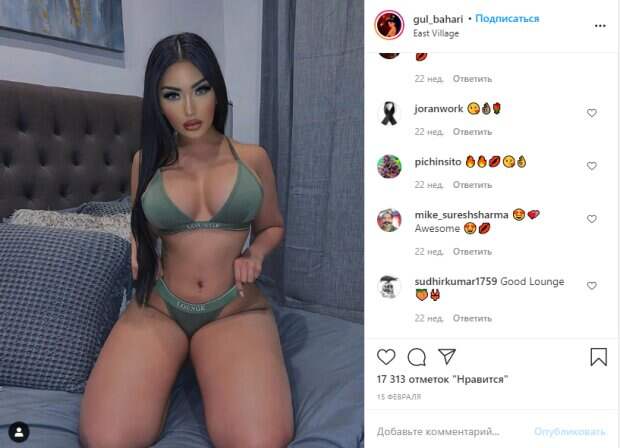 Так, Гюль позировала на мякой постели, согнув ноги в колянях и подчеркнув тем самым тонкую талию и линию бедер. Девушка восхитила также и идеальным макияжем, благодаря котором становится похожа на всемирно известную модель Ким Кардашьян. Позируя в довольно скромном белье, модели все равно удалось подчеркнуть достоинства и выгодно "подать" себя перед фанатами. Вот что пишут поклонники Бахаари: «@loungeunderwear Толстые бедра спасают жизни, предотвращая падение еды на пол 💁🏻♀️ #loungeunderwear», - написала Гюль. Вот что ответили фанаты: «У тебя там красивые ножки 🤩😍😘❤️», «Ты номер один в красоте @gul_bahari 😍😍😍😍😍😍», «Woooooooooooo😍 У тебя самые аппетитные бедра», «Я влюблен», «Sexi mami ❤❤👍», «Вау, супер, ты такая красивая, такая горячая девочка, любит тебя каждый здесь», «такая смелая малышка», «😍💕Удивительно 😍💋», «Хорошая гостиная 🍑👙». Также мы писали, что уже много месяцев молодая красотка из Турции по имени Гюль Бахари очаровывает пользователей социальной сети Инстаграм стильными фото, на которых позирует в самых разных образах. Девушка прославилась не только благодаря идеальным формам и необычной внешности, но также и потому, что ее прозвали «двойником Ким Кардашьян». Сейчас Гуль является амбассадором многих модных брендов, поэтому на ее странице всегда мелькают фото в ярких платьях, шелковых пижамах и блестящих костюмах. Недавно молодая красотка блеснула формами в платье необычного оттенка, что сделанное из блестящей тканы и с глубоким декольте. При этом пикантный вырез на груди Гюль невозможно не заметить, ведь он доходит практически до бедра модели. «Красивые губы😍», «О, мой !!! Такая красота 🔥», «эффектное платье на твоих шикарных изгибах, сводит с ума! 10/10», «Привет, красотка 😍😍 Напишите нам, мы будем рады сотрудничать ❤🔥», «Выглядит фантастически в этом платье 🔥🔥🔥🔥🔥❤️❤️❤️❤️❤️», «Эффектный вид ❤️», «Черт, звездное платье !!», «💌 Великолепная дама! Будь нашим послом. Свяжитесь с нами, пожалуйста!». Напомним, что Гюль Бахари не смогла удержать "персики" в королевском декольте: "Настоящая кукла". А еще Politeka писала, что Гюль Бахари еле вместила свое сокровище в громадное декольте: "Вкусные дыньки". Также Politeka сообщала, что Гюль Бахари пленила размером «мячиков» в тесном купальнике из веревок: «Восточная принцесса».