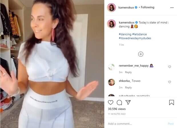 На видеозаписи певица устроила жаркие танцы в своей гардеробной комнате, пока ее муж Потап не видит. Она нарядилась в белый топ и юбку, тесно обтягивающую бедра. Волосы знаменитость собрала в большой пучок на голове. В таком виде Настя Каменских решила потанцевать: она мотала головой, трясла своей пятой точкой, наклоняла туловище и просто хлопала. Напоследок исполнительница соблазнительно подмигнула зрителям. Пользователи социальной сети в комментариях оценили танцевальный талант Каменских о ставили ей много отзывов, некоторые раскритиковали выходку украинской артистки: "Это ужас"; "Да роди наконец-то, будет, чем заняться"; "Господи, Настя, тебе сколько лет???? Это выглядит ужасно!"; "Обожаю, как всегда - очаровательна"; "Настёна, это на тебя жара так влияет? Что за странные движения?"; "👏👏👏классная..."; "Красоточка"; "Какая же вы классная все таки! Прям смотреть и не налюбоваться!"; "Что это за дичь". Напомним, что мокрая Каменских завела утренним фото в купальнике, вид впечатляет: «Фигура богини». А еще Politeka писала, что счастливая Каменских в тонком белом платье поделилась важной новостью: "Наконец-то! Дождались...". Также Politeka сообщала, что Настя Каменских рассказала правду о своей жизни: "Измены, пластика и звездная болезнь".