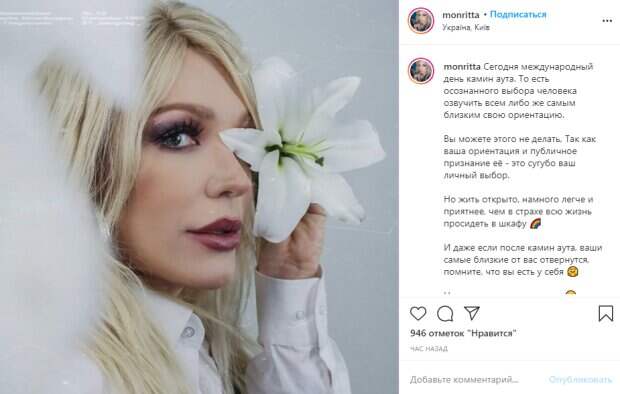 Украинская актриса, травести-дива Монро выразила слова поддержки тем украинцам, которые совершили каминг-аут или только думают об этом Как передает Politeka.net, 42-летняя звезда опубликовала новое фото в своем микроблоге в Инстаграм, на котором предстала в белой рубашке, с нежным цветком лилии в руке.