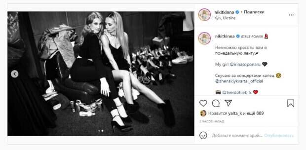 В этот раз Никитина опубликовала фото у себя в Инстаграм. Девушка была в костюме и в туфлях. Ирина же примерила платье, которое совсем не прикрыло ножки красотки. "Girls power.Немножко красоты вам в понедельную ленту. Скучаю за концертами - капец", - написала Катя под фото. Фанаты поставили почти тысячу лайков и написали комментарии: "Горячие штучки", "Несколько прекрасных фотографий, дополняющих красоту в лучшем и лучшем качестве", "Красивая", "Я вас обожаю". Мы писали, что известная украинская актриса, звезда "Женского квартала" Ирина Сопонару показала, как нужно соблазнять мужчин. На свежих фото, которые Ирина опубликовала в Инстаграм, она показала кадры из нового выпуска «Женского квартала». На фото Ирина предстала в мини и леопардовом халатике. Она сидела на диванчике и протягивала ножки к коллеге, соблазняя его. Напомним, блондинка из «Женского квартала» приняла ванну при свечах и сняла все на камеру А еще Politeka писала, что блондинка из "Женского квартала" показала реальность жизни с мужчиной, насмешив украинцев Также Politeka сообщала, что блондинка из "Женского квартала" раскрыла новые подробности о своей операции