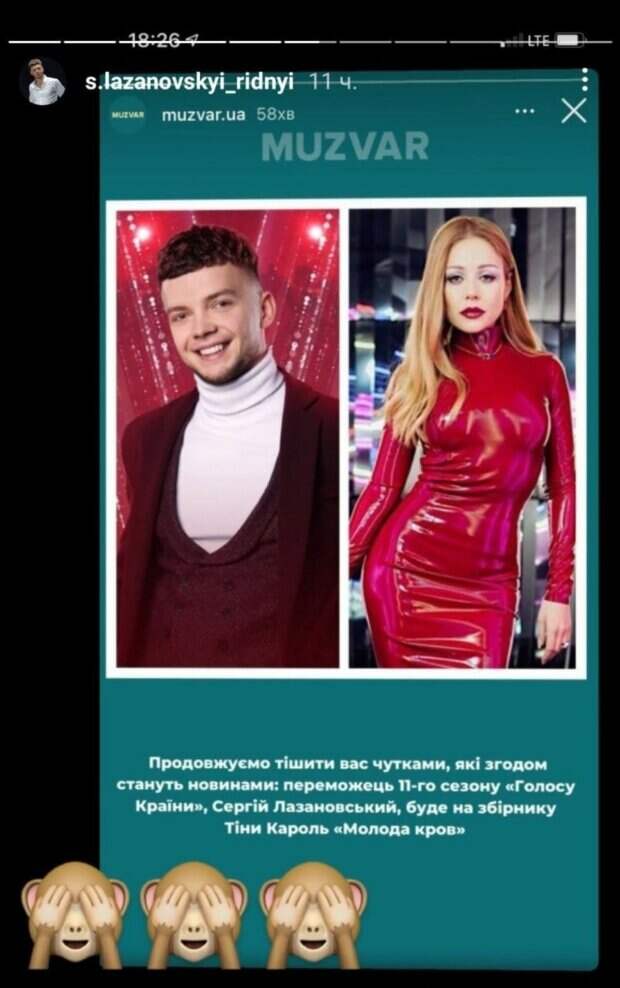 Причем с певицей Тиной Кароль, которая также была членом жюри и не смогла победить с участником в том году, артист неожиданно решил посотрудничать в ее новом проекте. Так, звезда сейчас активно продвигает новый музыкальный проект "Молодая кровь". Сам Лазановский сделал репост с неожиданным заявлением в сети Инстаграм: «Продолжаем радовать вас сплетнями, которые скоро станут новостями: победитель 11-го сезона «Голоса» Сергей Лазановский будет на сборнике Тины Кароль «Молодая кровь». Отмети, ранее исполнительница в рамках своего проекта "Молодая кровь" презентовала уникальный NFT лот. Певица выставила на аукцион цифровой автограф – отпечаток собственного пальца. Напомним, что Кароль похвасталась массивным кольцом на безымянном пальце: "Прям Хюррем Султан". А еще Politeka писала, что Тина Кароль застукала непрошенную гостью у себя во дворе, пряталась в розах: кадры. Также Politeka сообщала, что Тина Кароль наклонилась перед камерой, очаровав декольте: "Становится все жарче…".