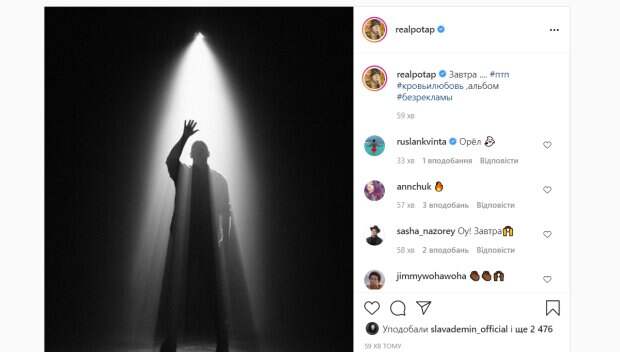 Артист уже выпустил трек "Ровно", а в пятницу, 28 мая, представит еще одну композицию из альбома "Кровь и Любовь". "Завтра .... ПТП "Кровь и любовь" альбом", - подписал фото артист. Его поклонники тут же отреагировали на пост множеством комментариев. "Орёл