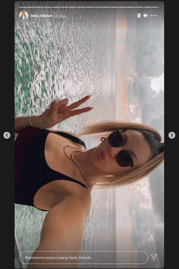 Известная украинская телеведущая Леся Никитюк показала себя в новом образе На фото Леся позировала в черном топике. Другой одежды на Никитюк не было, красотка хвасталась видом океана на Мальдивах. Звезда дополнила образ украшениями на шее и стильными очками. Телеведущая смотрела в камеру, а волосы решила собрать в хвост, чтобы не мешали.
