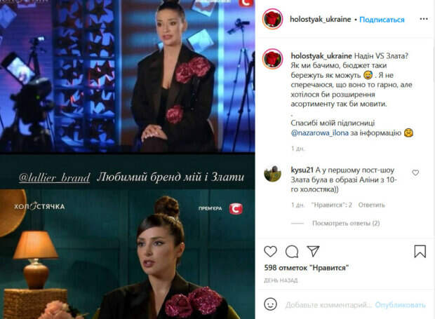 Однако, внимательные зрители заметили еще одну любопытную деталь: Огневич несколько раз появлялась на шоу в нарядах, которые ранее засветились на конкурсантках в проекте «Холостяк». Соответствующие посты были опубликованы на фан-странице шоу в Инстаграм, пишет Politeka.net. Сначала на Огневич заметили эффектный черный пиджак с декоративными розами, который выглядел точь в точь как наряд Надин Медведчук из «Холостяк 11». «Надин VS Злата? Как мы видим, бюджет таки берегут как могут. Я не спорю, что оно то хорошо, но хотелось бы расширения ассортимента так сказать», - говорится в публикации. Затем зрители заметили, что розовое платье с открытыми плечами, в котором Злата появилась в одном из выпусков, выглядит очень похожим на платье Алины Ляшук из 10-го сезона «Холостяка». В сети бурно обсуждают такое решение создателей шоу. «стб боится разориться на нарядах», «Это мне кажется унизительно надевать платья те что уже носили другие участницы», «Костюмеры подставляют Злату, как только могут) Прям по максимуму», «Капец! Я ещё понимаю, если бы после Златы на девочек претендентов надевал, а наоборот уже второй наряд за программу секонд хенд что не хватило у проекта денег на платье?», «Походу проекту не хватает финансов», - пишут люди. Напомним, "холостячку" Огневич в длинном платье с кроссовками раскритиковали украинки. Как сообщала Politeka, на участника "Холостячки" набросились после признания Злате Огневич. Также Politeka писала, что претендента на руку и сердце "Холостячки" Огневич разнесли в пух и прах.