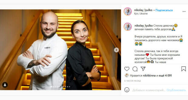 Печальной новостью поделился на своей странице в Инстаграм друг Стеллы Николай Люлько, также участвовавший в «МастерШеф». «Стелла девочка вечная память тебе дорогая. Вчера родители, друзья, коллеги и Я лишились дорогого нам человека. Стелла девочка, так я тебя всегда называл. Ты была мне хорошим другом! Ты была прекрасной коллегой. Ты наша зажигалочка. Мы с тобой прошли многое!», - написал Николай. Он добавил, что до последнего продолжал надеяться на чудо. Свои соболезнования в связи со смертью Стеллы выразили и создатели «МастерШеф». «Выражаем искренние соболезнования. Вечная память», - написали они. Украинцы также не могут поверить в смерть молодой звезды шоу. «Капец, что же случилось? Она у меня в любимках ходила на Мастер Шеф. Молодая такая!», «Какой ужас! До сих пор не верится. Терпения Вам, пусть земля ей будет пухом», «Как так могло произойти? Сочувствую. Вечная память», «Очень горькая потеря», - пишут люди. Напомним, Хименес-Браво из "Мастер Шеф" засветил интерьер своего дома в Канаде. Как сообщала Politeka, Клопотенко забрал престижную награду из-под носа судьи "Мастер Шеф" Ярославского. Также Politeka писала, что в шоу "Мастер Шеф"-11 пришел "двойник" молодого Олега Скрипки.