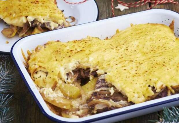 Сытный ужин для всей семьи приготовим из мяса и картошки так, что его будут просить повторять снова и снова. Сам рецепт — доработанный вариант классического мяса по-французски с добавлением грибов и приправ. Режем луковицу, обжариваем ее на сковороде в растительном масле около двух минут. Туда же добавляем 500 граммов нарезанных шампиньонов.