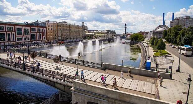 Демонтаж 17 плавающих фонтанов начался на Водоотводном канале в Москве, по обе стороны от пешеходного Третьяковского моста между Кадашевской и Болотной набережными. Об этом сообщила в Telegram-канале пресс-служба столичного комплекса городского хозяйства.