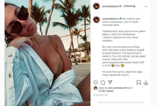 Анна Седокова присела на воллейбольной площадке под пальмами, подперла голову рукой и сверкнула обнаженными ножками. "Вот сейчас мне опять показалось, что я только начинаю жить. Удивительно, ведь достаточно давно живу. А простое понимание главного пришло ко мне лишь недавно. Вот как я могла раньше вообще жить без двух самых важных людей в моем бизнесе. Это бухгалтера и юриста. Тех, кто ответит всегда, даже ночью", - рассказала певица и дала своим читателям ценный совет. - "Никогда не подписывайте ничего не дав прочесть эту бумагу профи. Я так один раз подписала потрясающий музыкальный контракт на 5 лет, и на эти же 5 похоронила себя как артиста. Еле выбралась, а тогда казалось, что самая умная и счастливая". Анна Седокова добавила, что для ведения бизнеса необходимо хотя бы минимальное финансовое образование. Она выразила надежду, что поклонники смогут добиться успеха быстрее и без проблемных казусов. Ранее певица поделилась не менее горячим кадром со своего отдыха. На снимке, опубликованном в микроблоге, Анна появилась в купальнике желтого цвета, бейсболке и солнцезащитных очках, она нагнулась и похвасталась загоревшим телом, а вдобавок шаловливо высунула язык. Напомним, что за беда случилась с Анной Седоковой, певица едва не рухнула от боли прямо на сцене: "Не могу встать. .." А еще Politeka писала, что Седокова сверкнула похудевшей фигурой после диеты Также Politeka сообщала, что Седокову лишили возможности увидеть собственную дочь, причина поражает