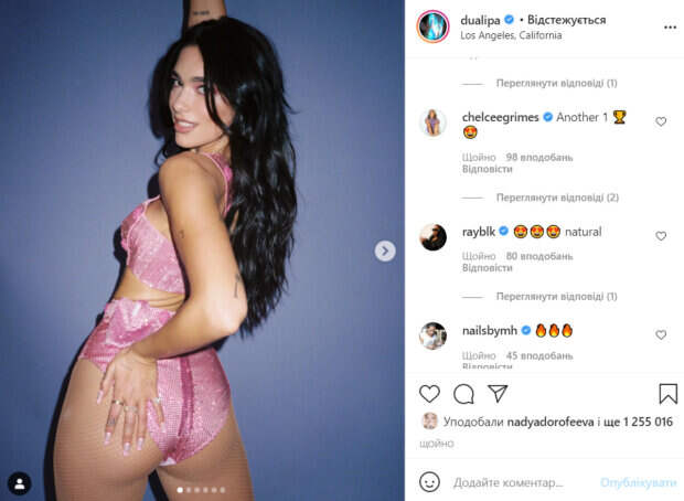 Сверху на певице красовался аккуратный топ. Традиционно образ завершал яркий макияж, многочисленные украшения и невероятная энергетика артистки. Судя по всему, для мероприятия девушка нарастила волосы или использовала парик, поскольку не так давно у певицы была короткая стрижка. Как оказалось, этот наряд Липа выбрала для номера на сцене Грэмми. Сама певица была номинирована на шесть премий "Грэмми", но выиграла лишь в одной категории, получив статуэтку за "Лучший вокальный поп-альбом". В комментариях под постом звезде оставили массу слов восхищения. «Жарче ада», «Такая естественная», «Ты просто космос», «Талант, исполнение, наряды, Грэмми прошло на ура», «Ты такая красотка», - пишут пользователи сети. Отметим, что Дуа Липе всего 25 лет, но она уже успела покорить своим талантом весь мир. Карьеру она строит с 2015 года. Напомним, что Дуа Липа нарвалась на шквал критики из-за кадра в мини-бикини: "Ты хоронишь себя заживо". Как сообщала Politeka, дерзкая Дуа Липа заманила в оковы ночи, засветив лишнее в платье с вырезами: «Какая кошечка». Также Politeka писала, что Дуа Липа в "дырявом" топе показала свои прелести во всей красе, можно смотреть вечно: "Роскошно".