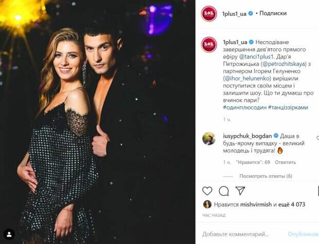 Девятый выпуск шоу "Танці з зірками" 2020 очень разочаровал украинцев развязкой На грани вылета в этот раз оказались две пары: Надежда Мейхер и Кирилл Васюк, а также Сергей Танчинец и Яна Цибульская, передает Politeka.net. Но неожиданно актриса Дарья Петрожицкая, которая получила меньше всего баллов от жюри, но избежала зоны риска благодаря голосам зрителей, решила покинуть шоу вместо одной из пар.