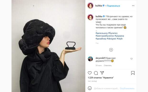 Она замоталась в черную ткань, придав ей очертания загадочного балахона. На голову актриса повязала импровизированный черный тюрбан из полотенец. В целом наряд юмористки выглядит так, будто она собрала его сама. Главной изюминкой фото стал маленький чугунный утюг, который артистка поставила себе на ладонь. «Встречают по одежке, но провожают же ...сами знаете по чему) Что бы вы подумали при виде человека в таком одеянии?», - поинтересовалась у своих подписчиков Булитко. Поклонники артистки тут же принялись делиться своими соображениями. «красотка))) оригинально», «Не сразу узнала Вас! Я бы подумала: Локдаун влияет на всех по-разному, норм», «модник-огородник», «Внутри скрывается прекрасная принцесса Виктория! Пора бежать! Сейчас меня погладят!», «Полотенец слишком много...», «Как говорил Холмс: "Давно с Востока?"», «Прикольная чудачка», «Модель сошла с подиума. Там и не такое увидишь», «Необычно. Смотрела в след бы необычному», «Золушка с утюгом», - пишут люди. Напомним, проказница Булитко из "Дизель шоу" получила предложение руки и сердца: "Ты уверен?". Как сообщала Politeka, неугомонная Булитко экспромтом выдала три любопытных факта о "Дизель шоу": "Теперь нас четверо...". Также Politeka писала, что голодная Булитко из «Дизель шоу» накинулась на еду, выпучив глаза: «Обед по расписанию…».