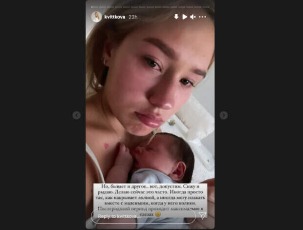 На этот раз девушка поделилась откровением в своём Инстаграм. В историях Даша плачет, держа новорожденного сына на руках. "Вот допустим, сижу и рыдаю. Делаю сейчас это часто. Иногда просто так, как накрывает волной, а иногда могу плакать вместе с маленьким, когда у него колики. Послеродовой период проходит максимально в слезах" После этого, девушка заявила, что ей не стыдно говорить об этом. Она поддерживает тех матерей, которые узнают себя в её словах и говорит, что они не одни. Уже позже, Даша выложила у себя в историях новую фотографию, где обнимает сына Льва и рассказывает про временный депрессивный период. "Хочу, чтобы вы понимали: я не страдаю и всё хорошо. Я знаю, что всё это временно. Просто хочу, чтобы все девочки, которые столкнулись с этим впервые, как я - не переживали. Чтобы они знали, что они не одни и если хочется плакать - плачьте". Ранее сообщалось, жена "Холостяка" Добрынина зацепила признанием, показав сына на первой прогулке: "Быть родителями..." Также, жене "Холостяка" Добрынина с младенцем на руках пришлось срочно съехать в отель: "Дома продолжаются..." Politeka рассказывала, "Холостяк" Добрынин неожиданно уехал от своей жены и новорожденного сына: "Как тут перебороть эту. .."